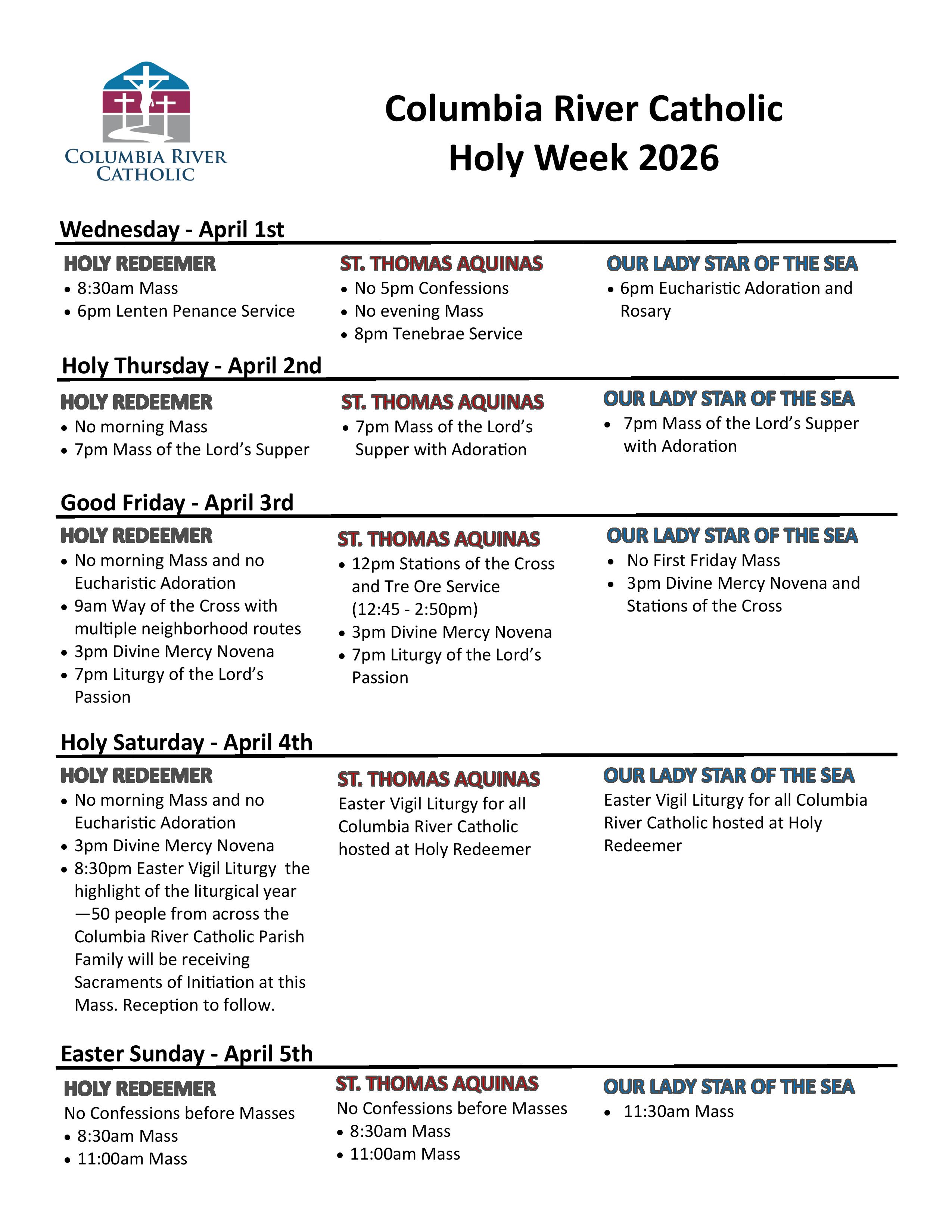 Wednesday: 5:00-5:45pm (before 6pm Mass)