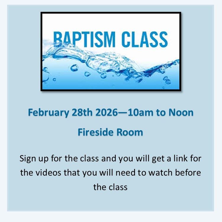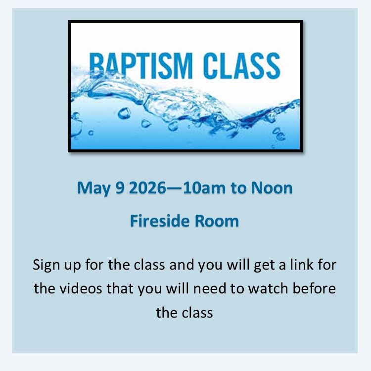 - see the date of the next Baptism Prep class in the right margin of this webpage (or contact