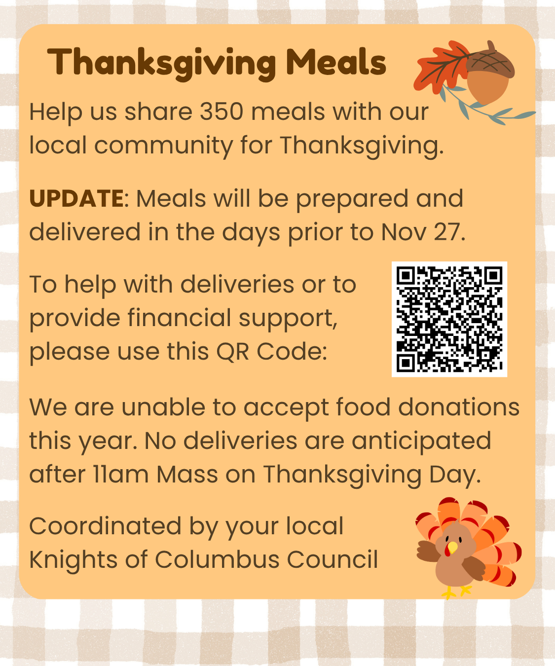 CLICK HERE to learn more, including how to help with preparations and/or offer financial assistance. This year, the organizers are unable to accept food donations.