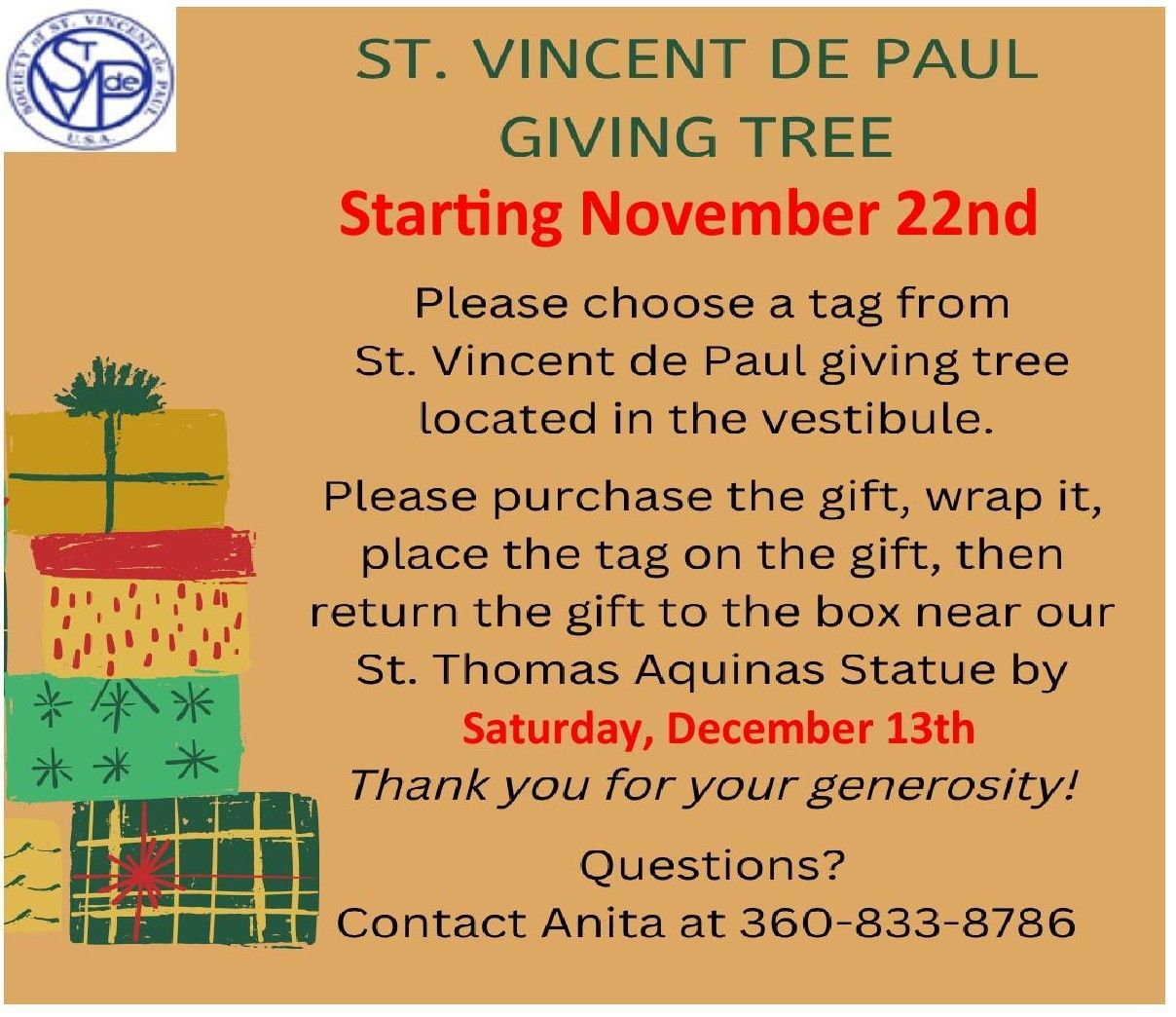 Columbia River Catholic will be helping the week of November 23-29.