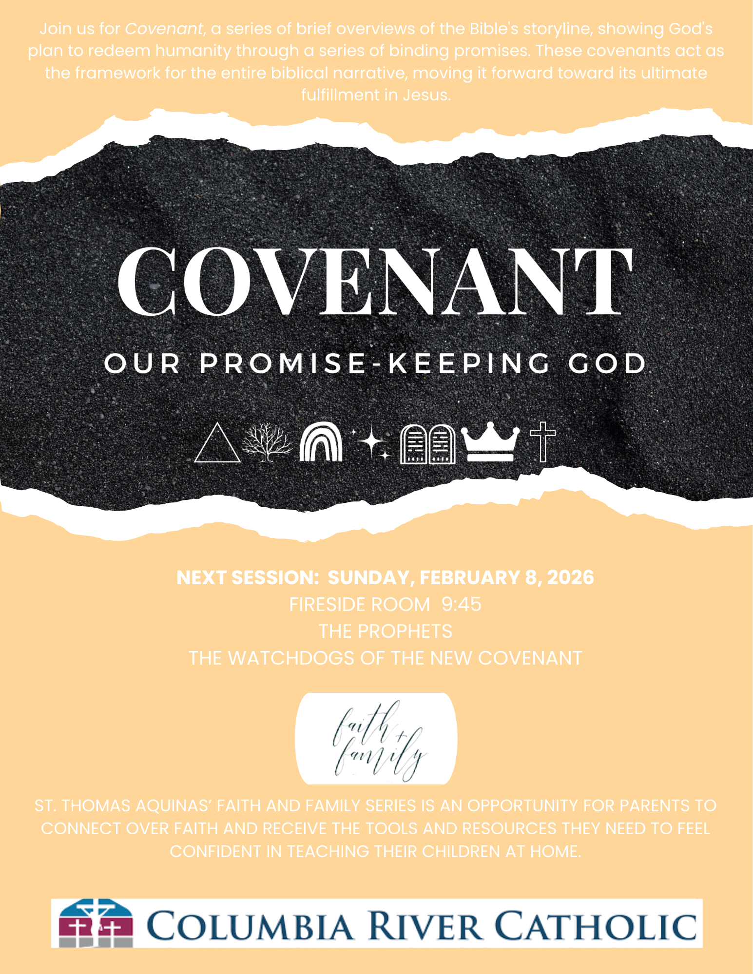 Join us in front of the Tabernacle in St. Thomas Aquinas Church as we discuss our topics for this month: